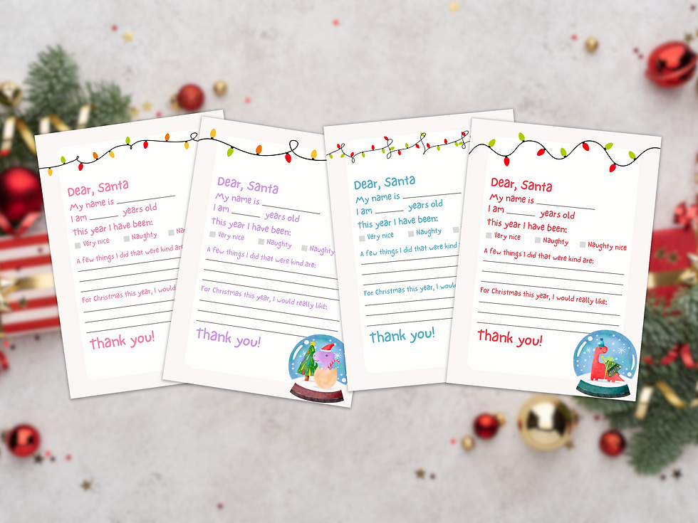 With this DIY Write-Your-Own Letter to Santa 3-pack, your child can craft their own heartfelt letter to Santa. Each page provides a blank space for creativity, allowing children to share their unique thoughts, hopes, and wishes with Santa in their own words. This printable set is perfect for families, classrooms, or anyone who loves to create a personalised holiday experience.